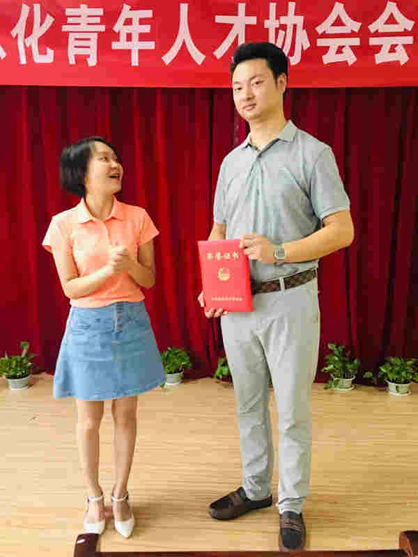 团市委宣传部尹素娟部长向头等舱任杭颁发2019年武汉市”向上向善好青年“荣誉证书。