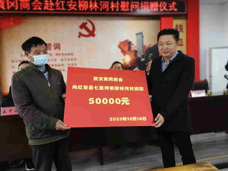 武汉黄冈商会执行会长李会明是红安人,对家乡他充满深深热爱,每年他都会捐资帮助贫困户解决生活和生产上的困难。这一次他又不例外。一大早,他就带着扶贫慰问资金,开车回到七里坪,等候大家。商会工会主席陈常青,早早就购买了米、油等物资。大家扶贫心切,不到集合时间,纷纷提前抵达集合地点七里坪镇柳河村。红安县政协副主席叶金荣、红安县扶贫办主任姚福祥、红安县七里坪镇镇长夏勇刚和村里的百姓们在村委会迎接商会企业家们。在村委会党建活动室举行了隆重热烈的捐赠仪式。李会明会长代表武汉黄冈商会向柳河村捐款现金五万元。商会机关党支部书记王中海、工会主席陈常青、妇联副主席占荣花、党建指导员龚泽生等为贫困户代表赠送米油等物资。村民们为商会企业家们报以热烈的掌声。