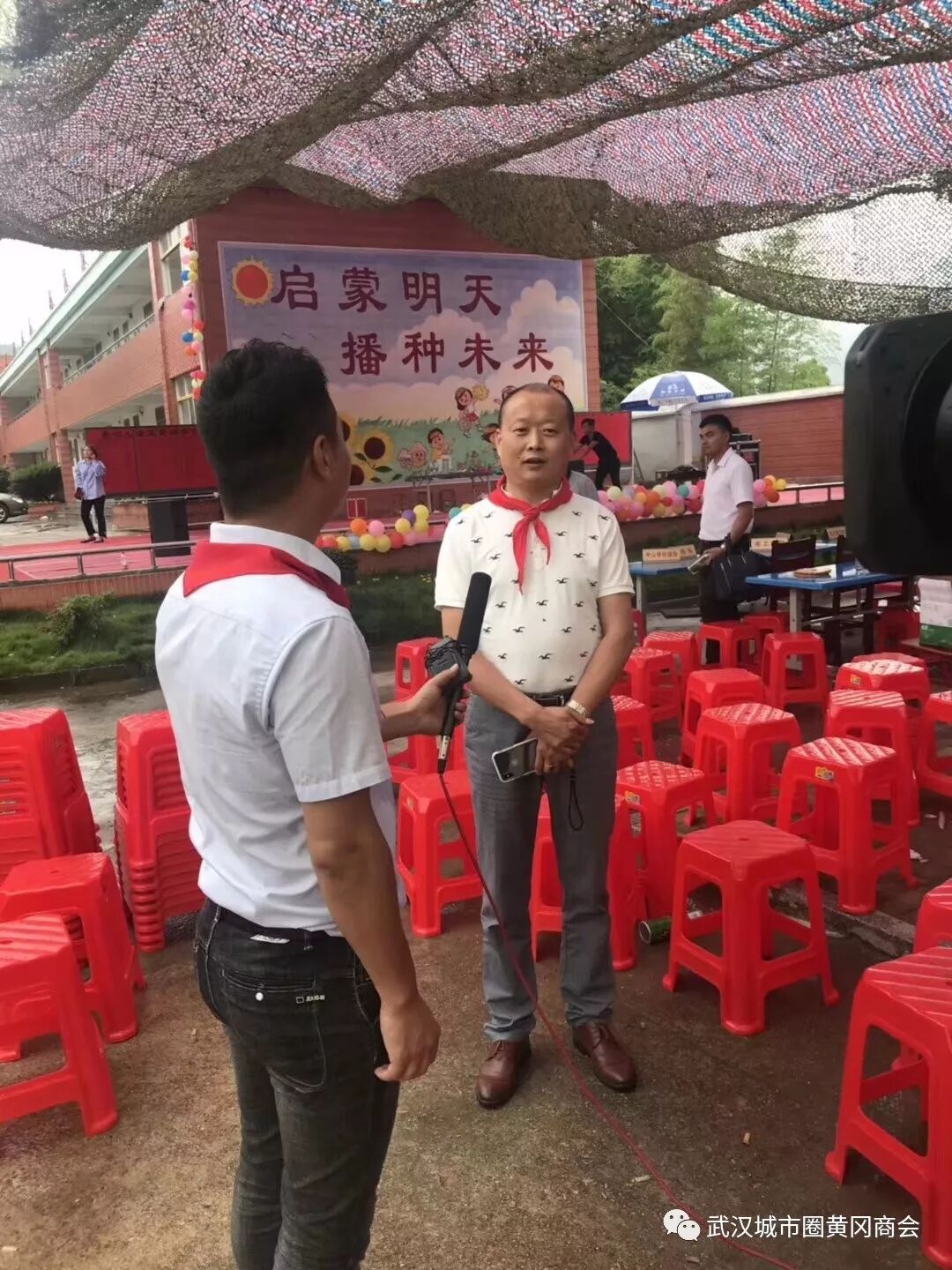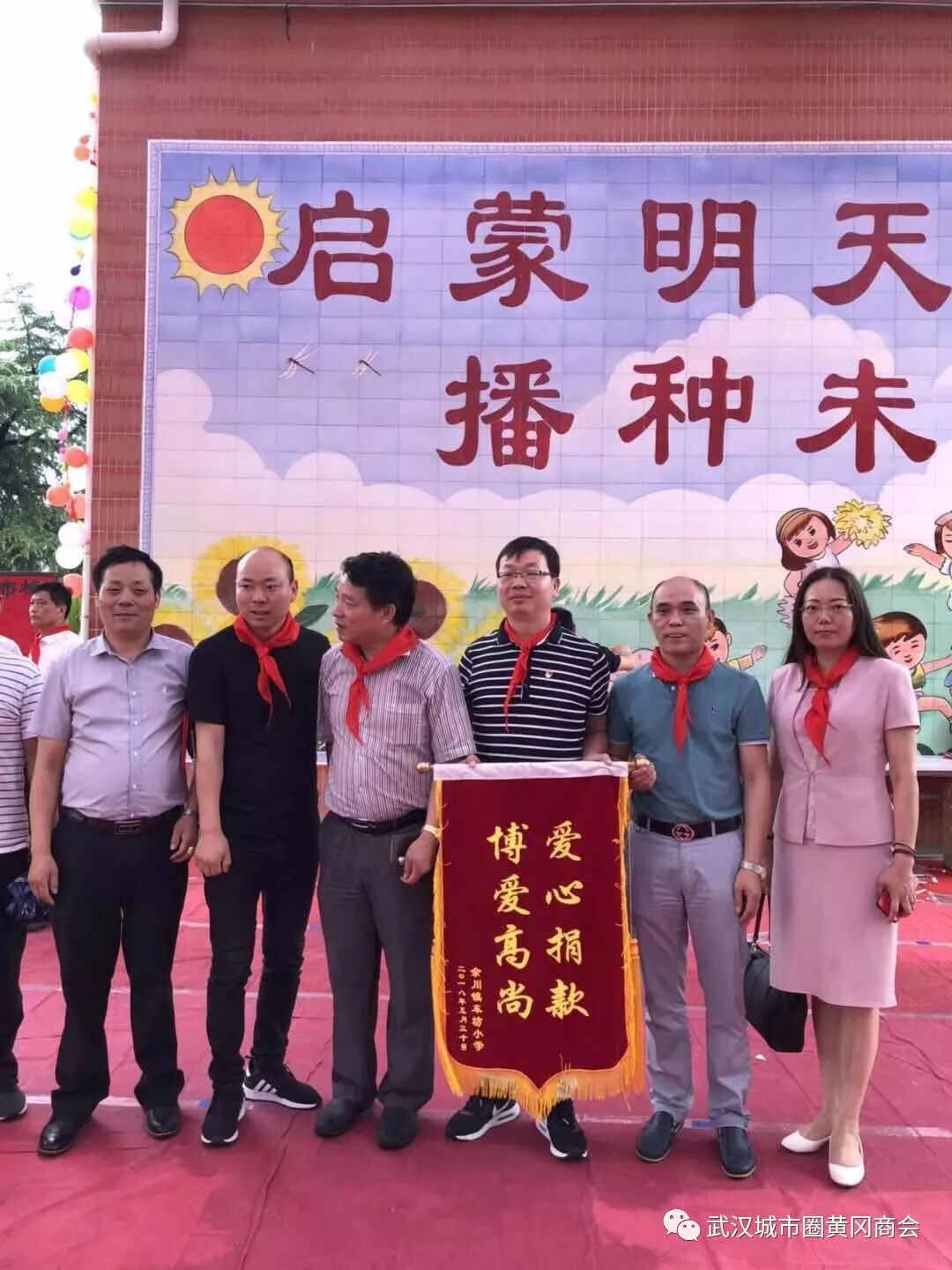 上月初,武穴市车坊小学校长陈锡全来到武汉黄冈商会,向商会领导报告了学校的境况和遇到的困难,以及留守儿童渴望关爱之情。会长助理龚泽生和秦彬秘书长为之动容,经请示喻鹏会长同意后,当即亲自草拟了“相约车坊,点亮未来——六一节关爱留守儿童的倡议书”,率先倡议社会各界好心人士、爱心企业家,携手为车坊小学的留守儿童奉献一片爱心,用激情抒写新时代的大爱篇章。此活动得到了商会联席会长、武汉武穴商会王操国会长的积极支持。王会长表示:帮助家乡留守儿童,是我们在外武穴籍企业家义不容辞的责任。他当即表态,武汉武穴商会捐款不少于5万元。
