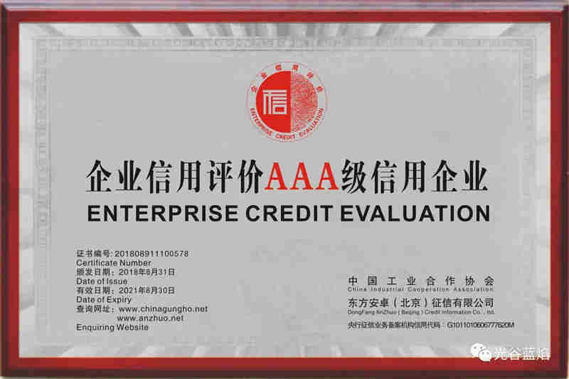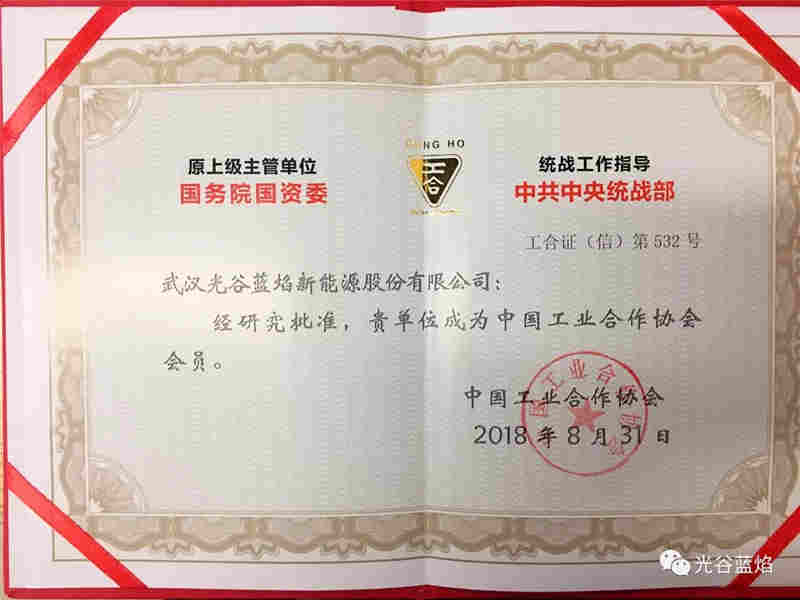 近日,中国工业合作协会授予武汉光谷蓝焰新能源股份有限公司AAA级信用企业荣誉称号(最高级别)。同时,光谷蓝焰被批准成为中国工业合作协会会员单位。