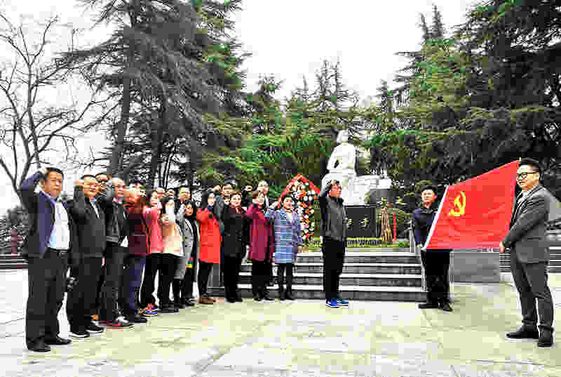 在向警予烈士烈士陵园内,松柏苍翠、庄严肃穆,鲜艳的党旗迎风飘扬。巍然耸立的烈士纪念碑上,邓小平题写的“向警予烈士之墓”遒劲有力七个大字熠熠生辉。商会党员蔡金峰和肖云翔,托起花篮,缓缓走向纪念碑,敬献花篮,在纪念碑前,大家神情肃穆,聆听党建指导员龚泽生介绍向警予烈士的英雄事迹,并向向警予烈士墓三鞠躬。商会机关中心党支部书记王中海带领大家重温入党誓词。接着,全体成员瞻仰红色战士公墓,表达对烈士们的崇高敬意和深切哀思。